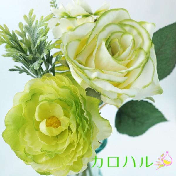 ローズ ラナンキュラス ミックスバンドル グリーン ホワイト 花束葉付き シルクフラワー 造花 髪飾り 花冠 インテリア コサージュ Z322 カロハル Yahoo 店 通販 Yahoo ショッピング